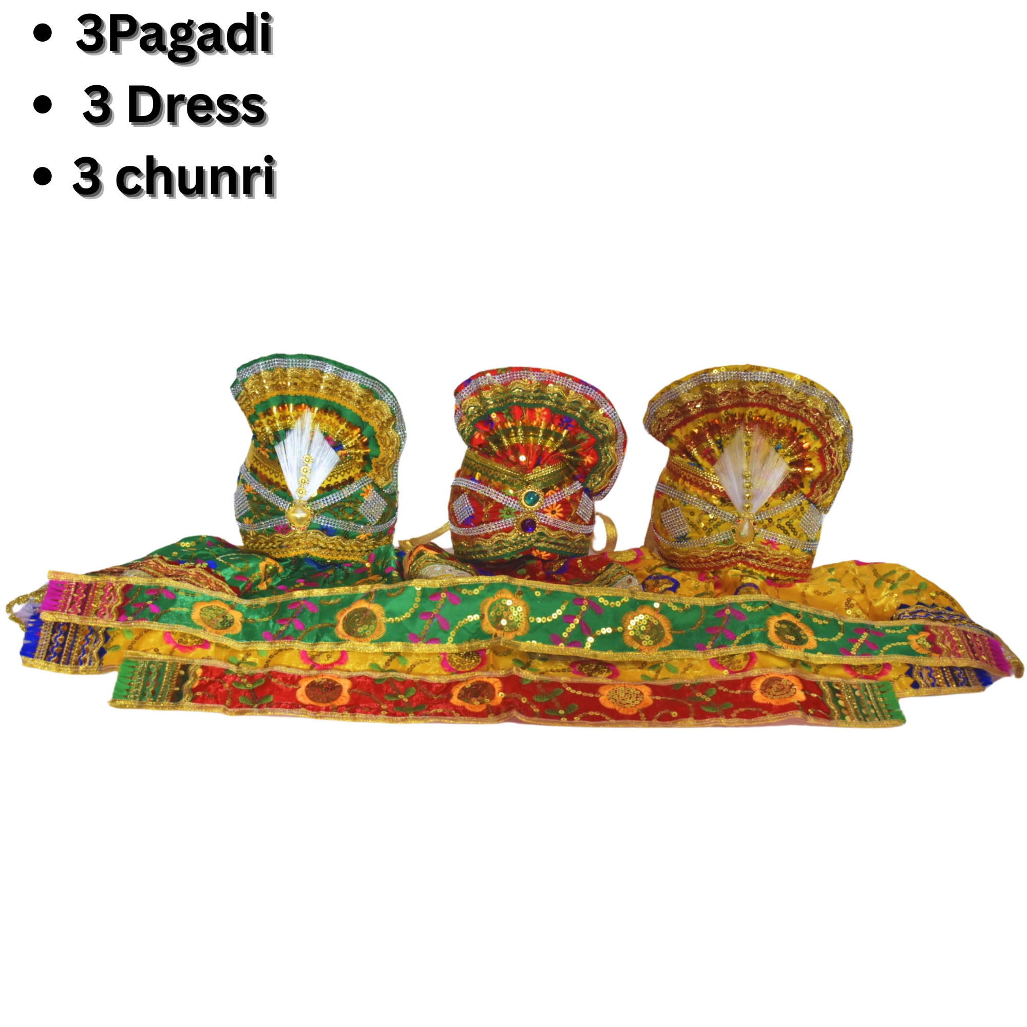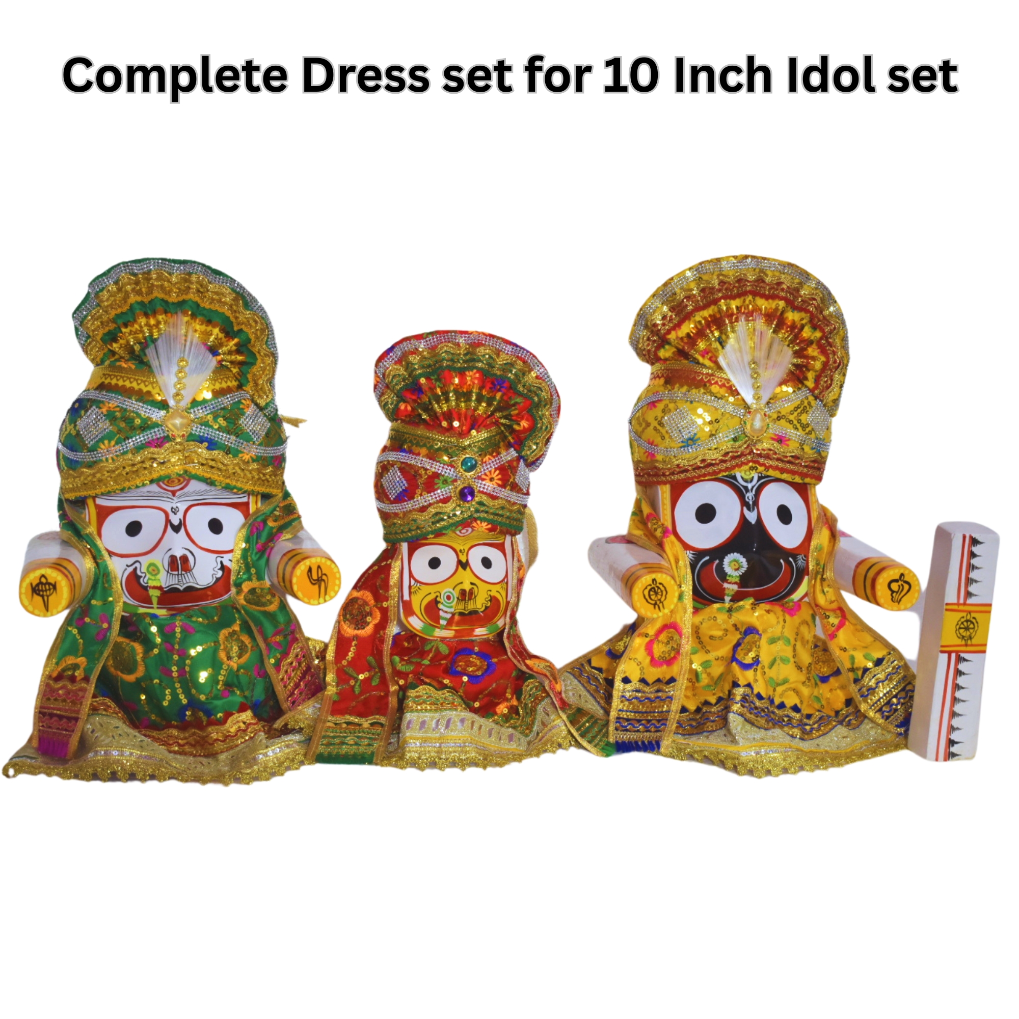 • Complete Dress Set: Includes outfits for Shree Jagannath, Balabhadra, and Subhadra idols.