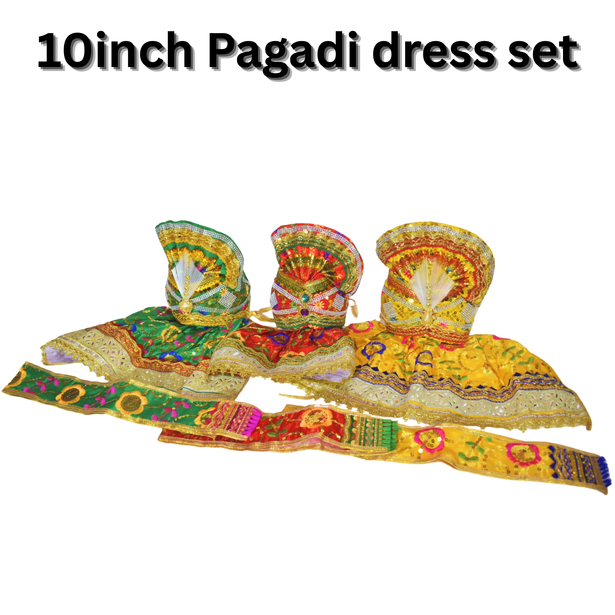 Complete dress set designed for 10-inch Shree Jagannath, Balabhadra, and Subhadra idols. Made with traditional craftsmanship, this set enhances the divine appearance of the idols. Perfect for daily worship, festive occasions, and temple decor. Easy to drape and comfortable for regular use.