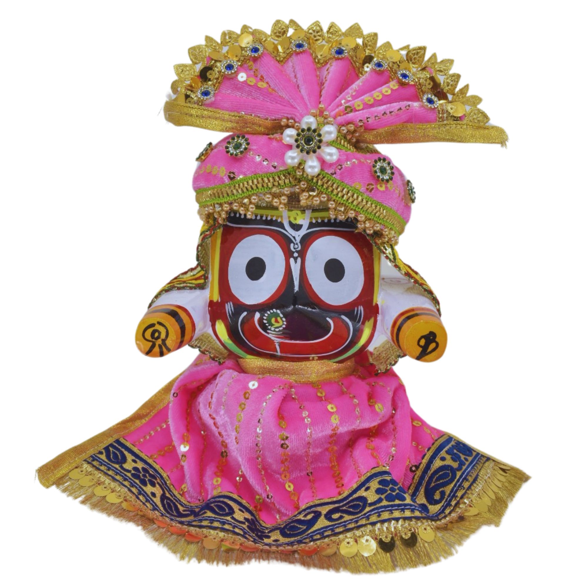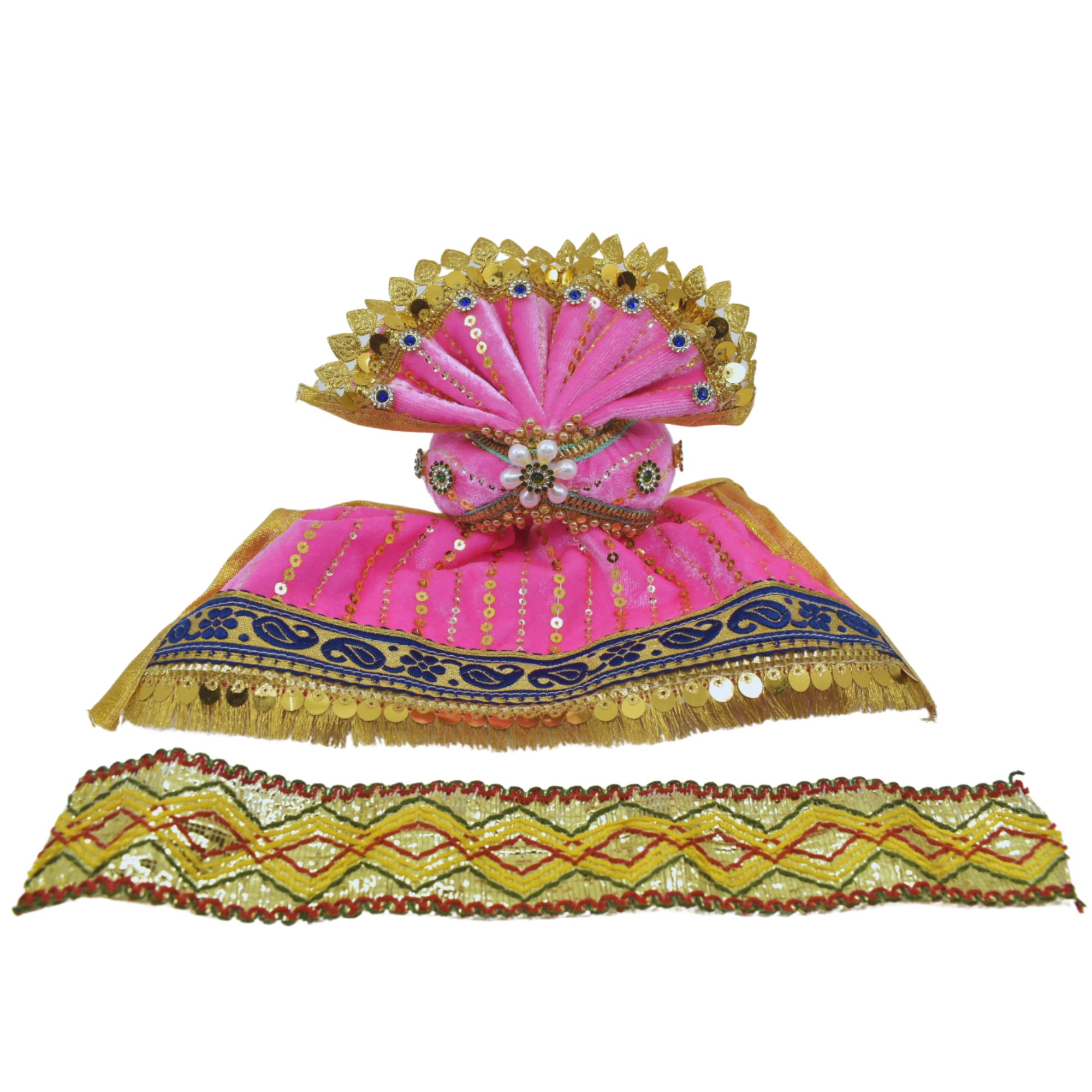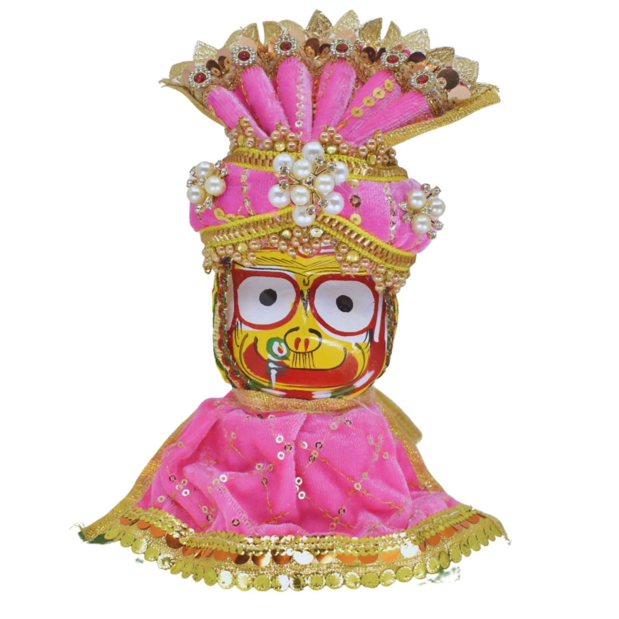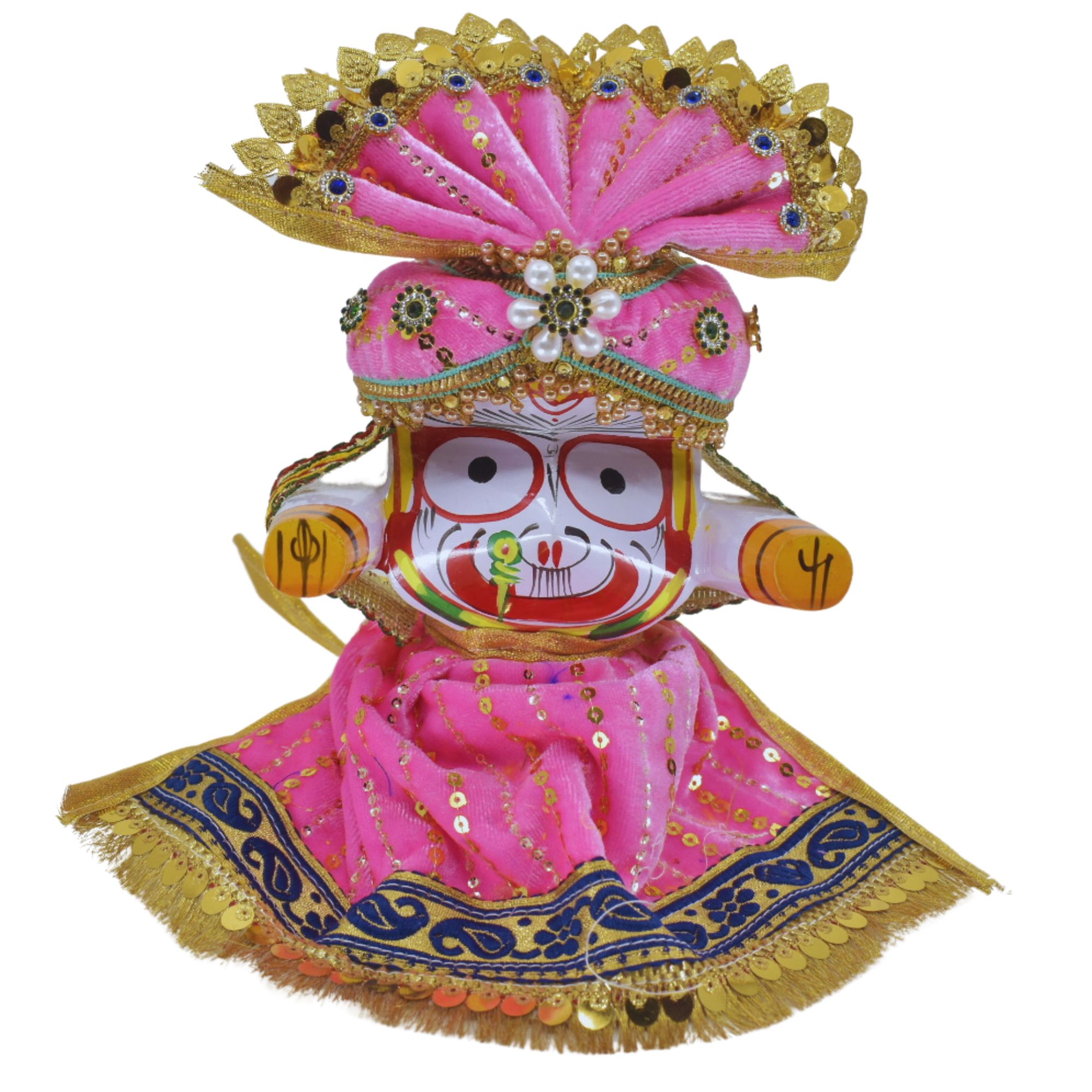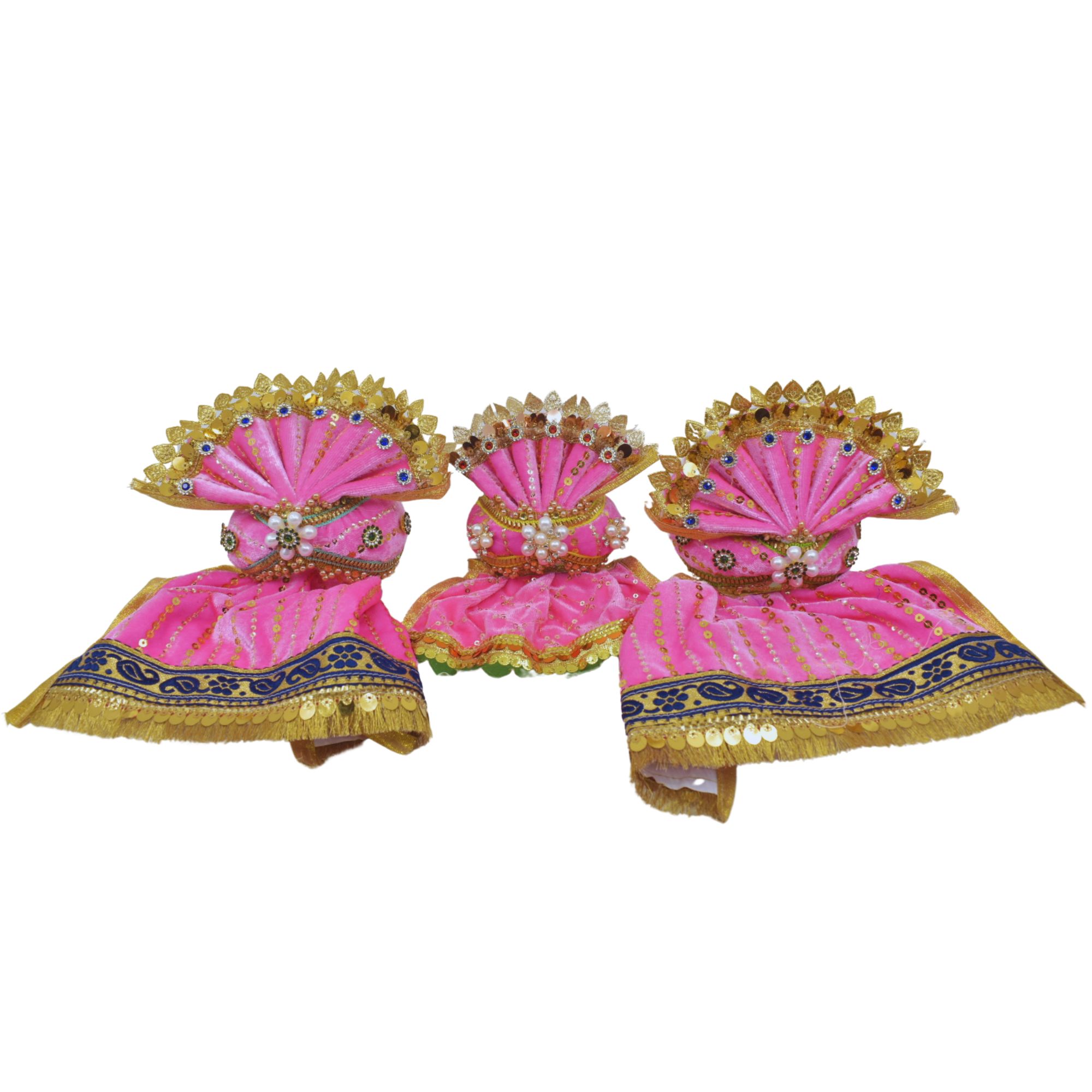 6-Inch (15cm) Jagannath Trio Pagadi Dress Set – Handmade Traditional Design (Pink)