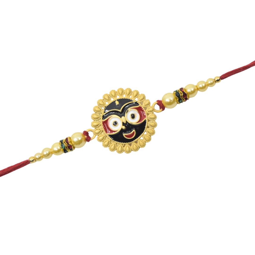 This handmade Lord Jagannath Rakhi reflects the essence of Indian traditions. Soft, lightweight, and eco-friendly, it’s ideal for making your brother’s Raksha Bandhan special.