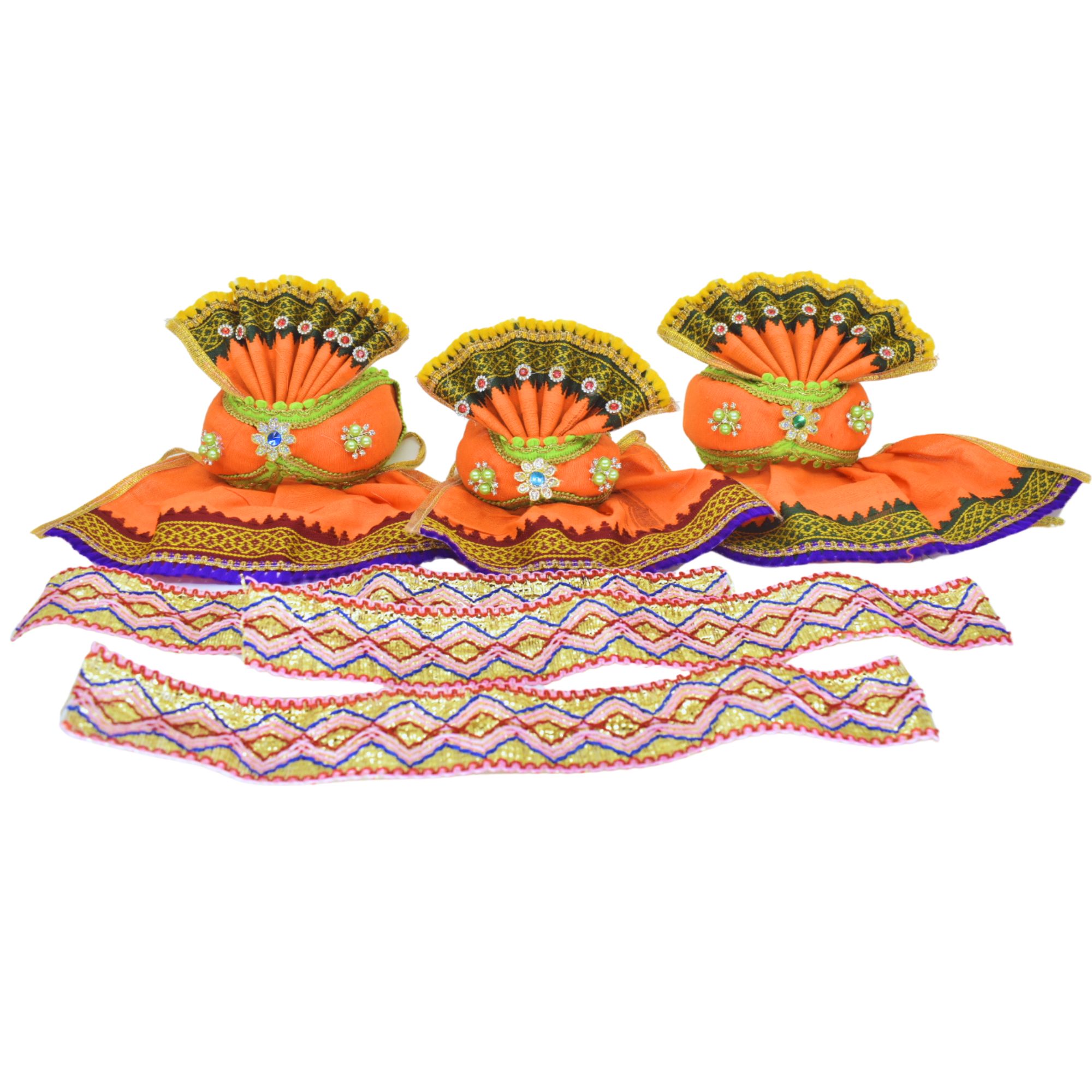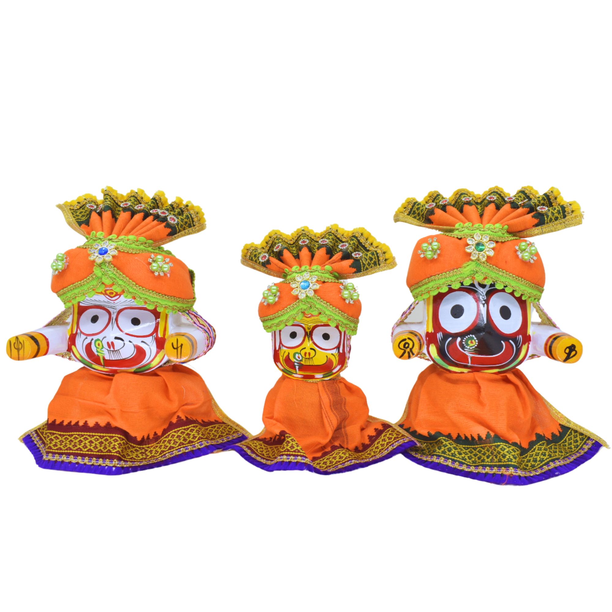 4 Inch(10cm) Complete Premium Pagadi Dress Set of Lord Jagannath, Balaram, Subhadra Idol (Orange)