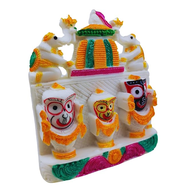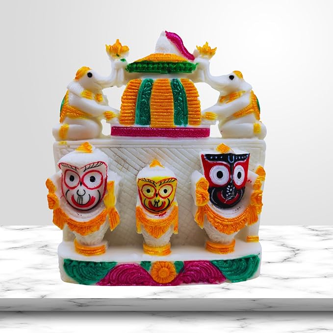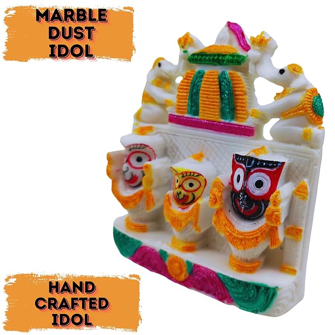 Beautiful handicraft colorful marble idol of lord Jagannath balaram and subhadra for living room, study room, hotels, office , corporate house , religious places, home temples, festive gifts.car dash board , gifting etc.
