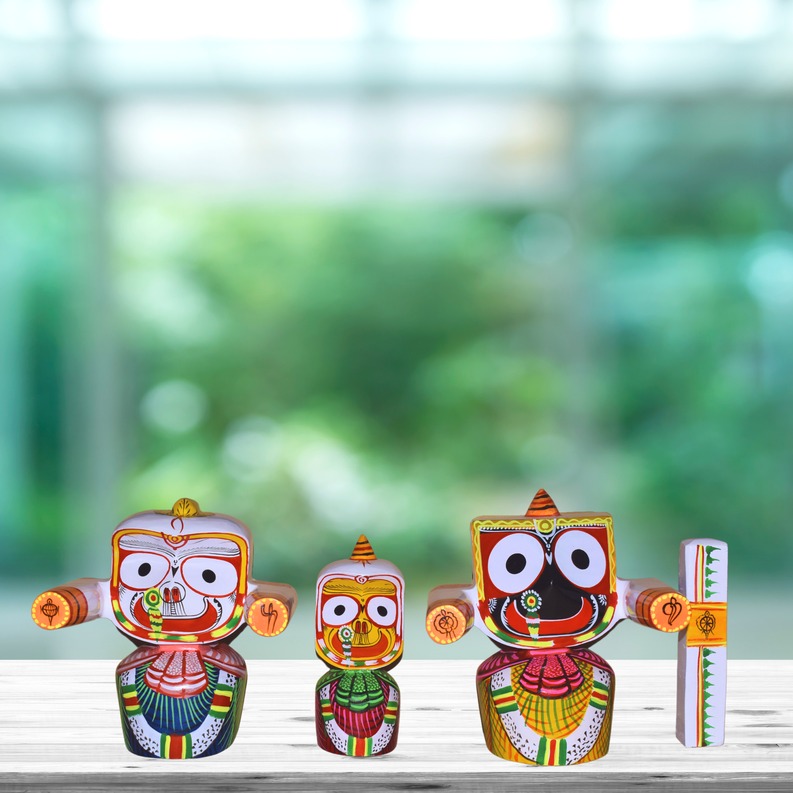 Lord Jagannath,Balaram,Subhadra Wooden Idol 10-Inch (Pack of 3,X-Large)
