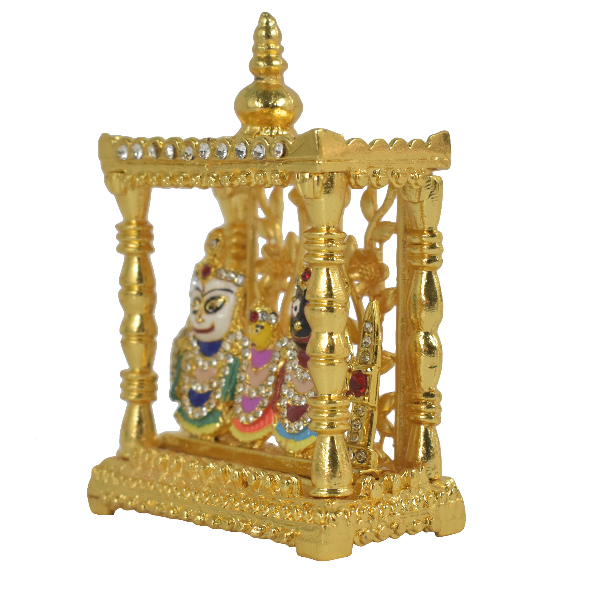 Lord Balabhadra and Maa Subhadra idols hand crafted in Pure metal and coloured traditionally . Due to its pureness it gives a much more golden looks which provides a royalty to your house , Puja temples or wherever it is use . We provide life time warranty on the crafts work and Colour . This is an antique piece and in best of quality. Only Pure and Premium Quality metal is used to make this wonderful crafts of Lord Jagannath idol .